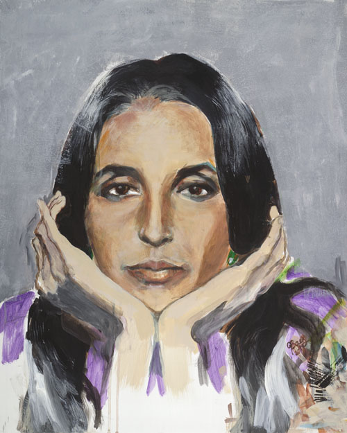 The photographer would probably approve of the alteration she made when she used his photo to paint her portrait. It shows a famous young performer and activist with her face in her hands and with her long hair once again flowing over her shoulders, looking like the folk madonna Karsh had envisioned.